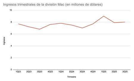 Sin embargo, la promesa de que la IA revolucionaría nuestras PC sigue siendo sólo eso: una promesa. Apple parece tener tranquilidad. Y tiene que ser así, porque en el último trimestre las ventas de la división Mac crecieron un 13% respecto al mismo periodo del año pasado. Nada mal.