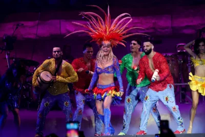 A continuación, Giraldo Navarro apareció en el escenario principal, que emulaba una cueva, rodeado de bailarines iluminados por luces de neón, y abrió su presentación con el tema ‘Latina Forever’.