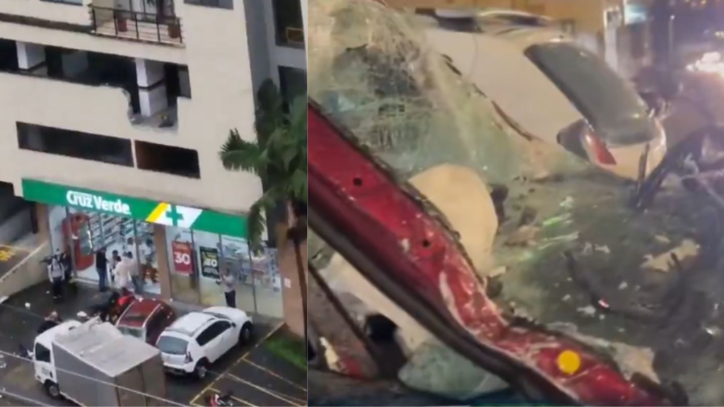 Impactante accidente en Manizales por auto que cayó del estacionamiento ubicado en el tercer piso de un edificio: una mujer resulta herida – Colombia informa